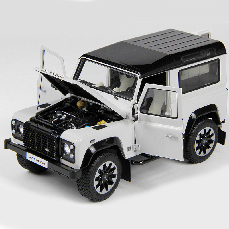 Land Rover Defender 90 Works V8 70th Edition 2018 in White from the LCD MODELS 1/18 die-cast model car collection has detailed exterior and interior reflecting the actual car. These details can be seen from every angle on this replica model.